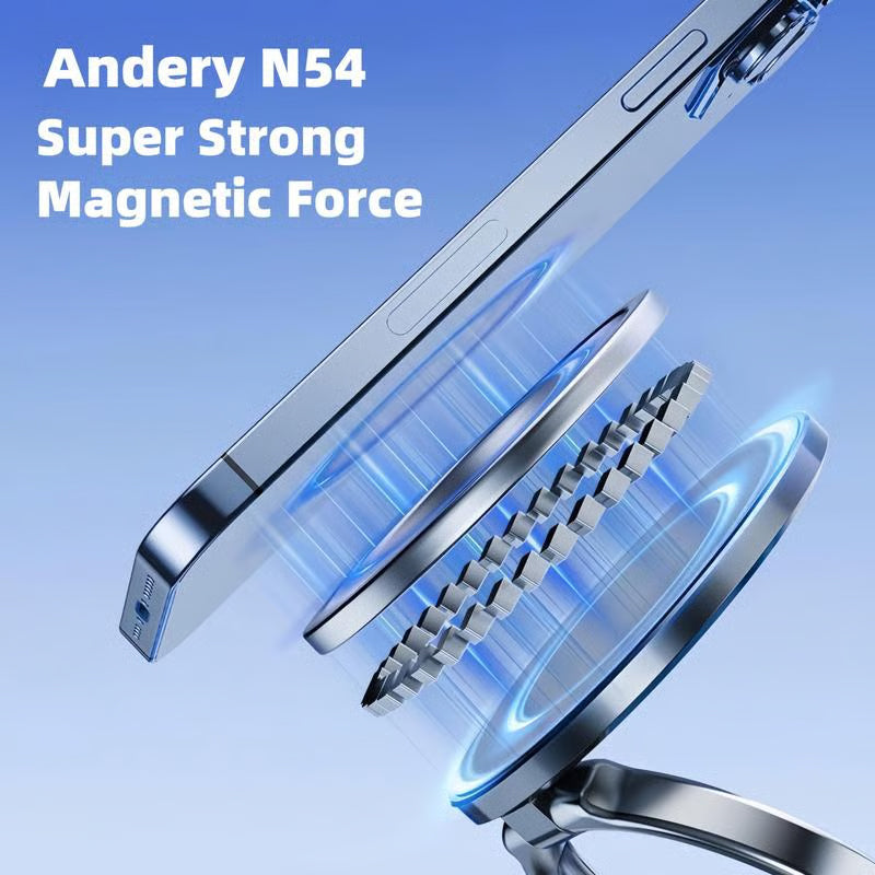 AJUSTEMENT DOUBLE AXE 360° & 180° – Ce support téléphone magnétique sous vide est doté d'un bras métallique annulaire pliable sur deux axes, réglable à 180°, et d'une base rotative à 360°, vous permettant d’ajuster librement l’angle souhaité et de le fixer solidement en place. De nombreux tests confirment ses excellentes performances en matière de stabilité. Le design pliable innovant réduit sa taille de 50 % lorsqu’il n’est pas utilisé, maintenant votre espace de travail propre et ordonné.