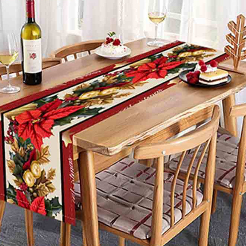 DÉCOR VIBRANT POUR LES FÊTES - Orné d'un motif classique de poinsettias et de houx, ce décor crée instantanément une ambiance chaleureuse et festive pour vos dîners de fêtes et rend vos réunions plus spéciales et accueillantes.