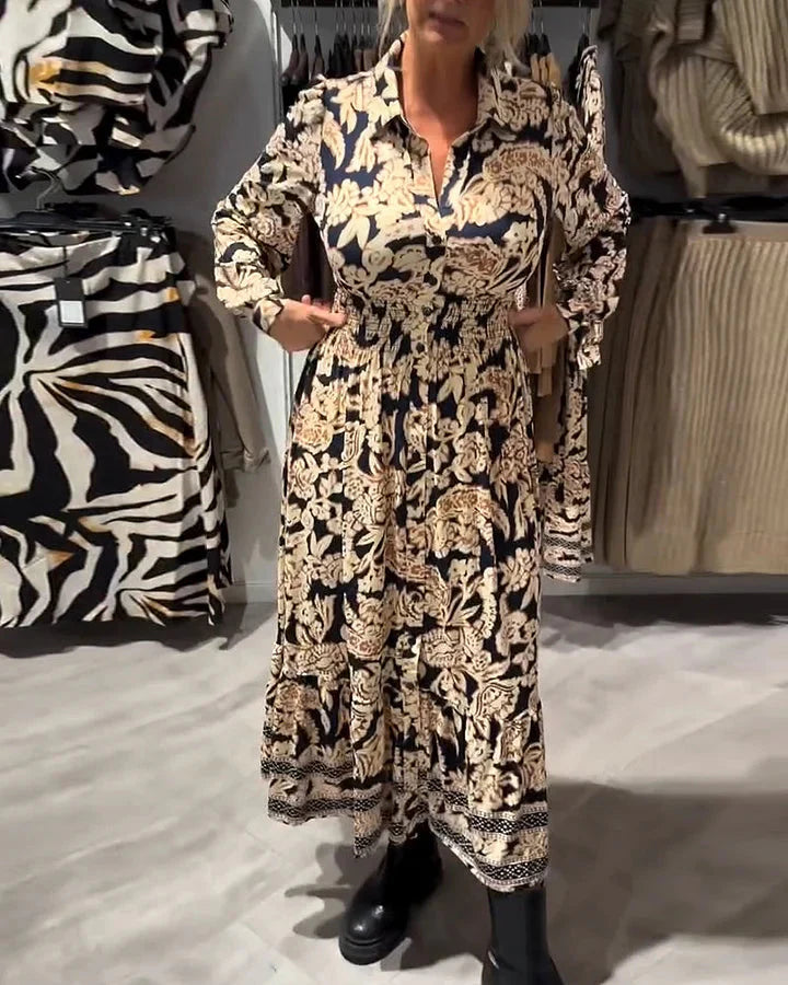 Robe chemise vintage à fleurs avec boutonnage à la taille