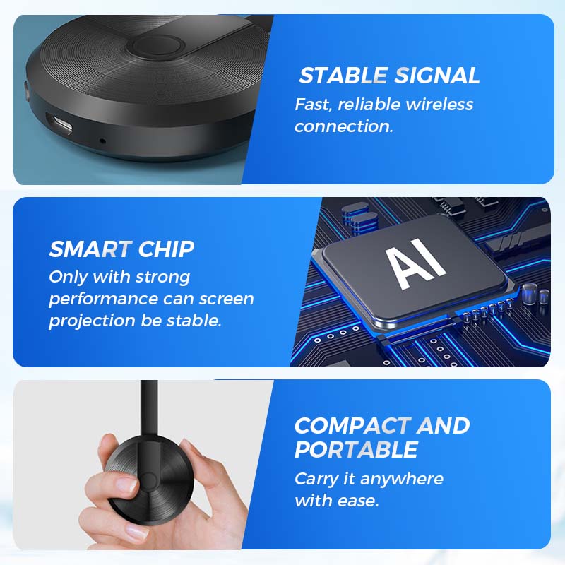 BROAD COMPATIBILITY – Lightweight and portable, this adapter works with a wide range of devices and systems. Perfect for travel, meetings, or home use, it ensures smooth mirroring from smartphones, tablets, and laptops.