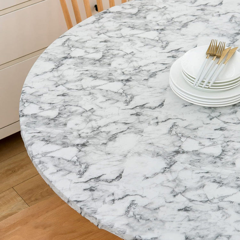 1 * Nappe Ronde Ajustée à Motif Marbre avec Bords Élastiques