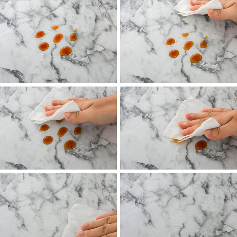 DOUBLURE PROTECTRICE EN FLANELLE BLANCHE : La nappe est dotée d’un revers en flanelle blanche qui protège efficacement votre table contre les rayures, les éclaboussures et les taches. Cette couche de protection préserve l’état de votre table tout en vous permettant de profiter de l’esthétique raffinée du motif marbré.
