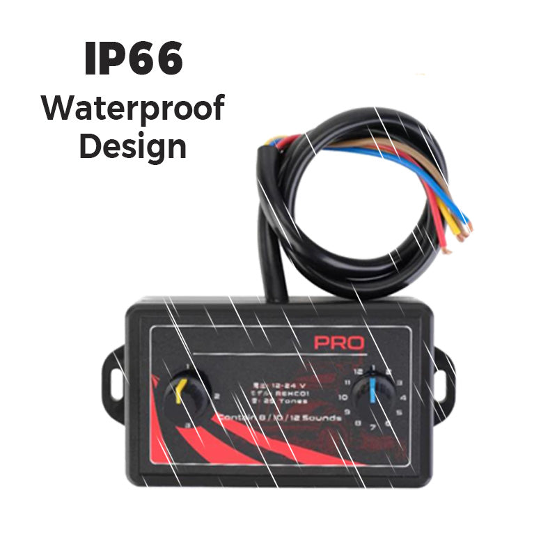 RÉGLAGE PRÉCIS À DOUBLE BOUTON – Équipé de deux boutons indépendants : l’un pour ajuster la vitesse du son, l’autre pour le rythme, permettant une personnalisation précise des tonalités du klaxon pour chaque situation de conduite.