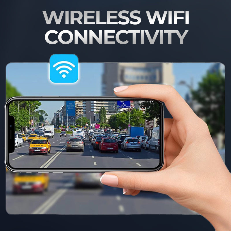 CONNECTIVITÉ WIFI SANS FIL : Transférez et visionnez les enregistrements instantanément grâce au Wi-Fi intégré—sans câble, sans données mobiles. Partagez facilement vos vidéos avec les assureurs ou vos proches directement depuis votre smartphone, sans tracas.