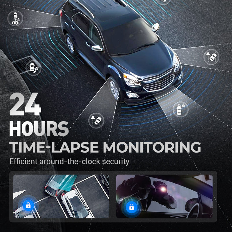 SURVEILLANCE EN TIME-LAPSE 24/7 : Garez-vous en toute tranquillité grâce à l’enregistrement en time-lapse économe en énergie. La caméra surveille votre véhicule en continu tout en préservant la batterie.