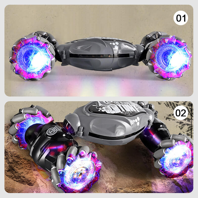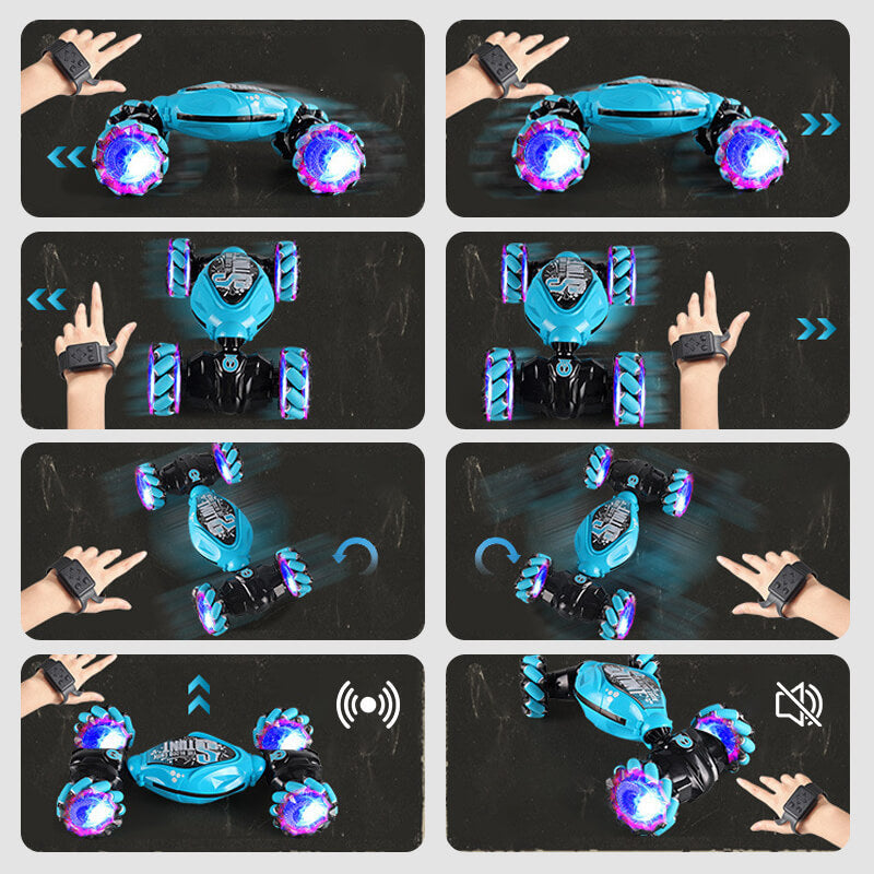DEUX MODES DE CONTRÔLE - Détection de gestes et télécommande. Vous pouvez porter la montre détectrice, et lorsque vous tournez votre poignet, la voiture suivra vos gestes. Alternativement, vous pouvez utiliser la télécommande sans fil 2.4GHz, qui fournit un signal stable pour un contrôle précis.