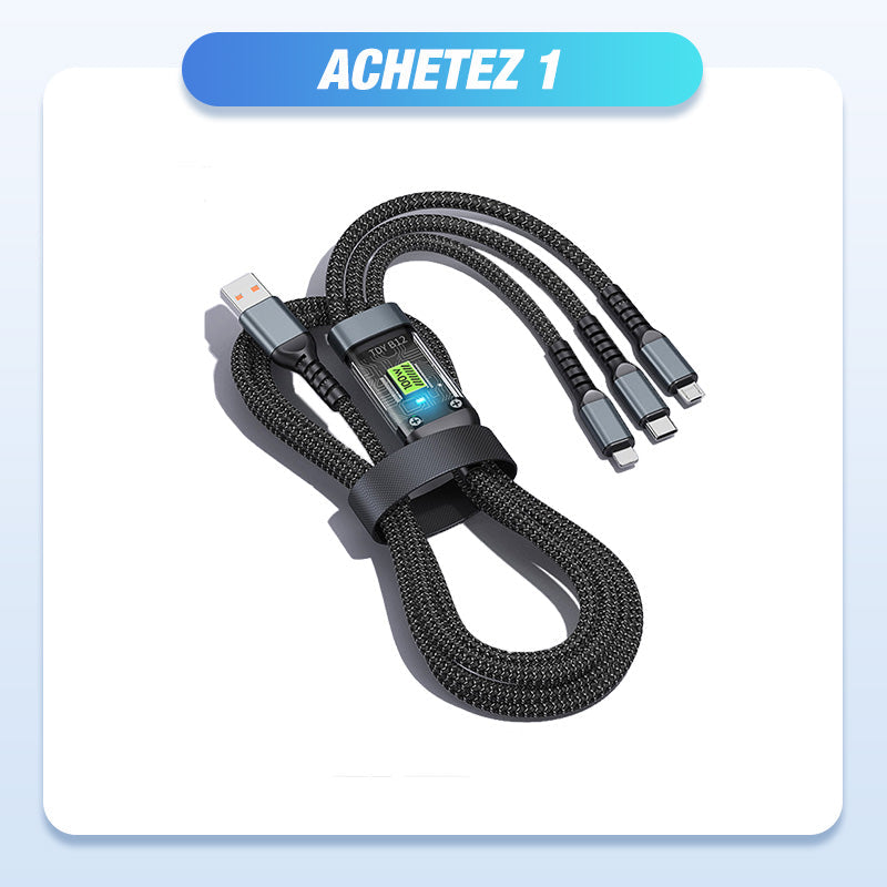 🔥2025 Ventes Chaudes🔥Chargement super rapide 100w, câble de données transparent 3-en-1