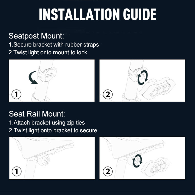 INSTALLATION RAPIDE – Compatible avec plusieurs positions de montage telles que le tube de selle ou le rail de selle, conçue pour un montage et un démontage faciles sans outils supplémentaires, offrant une installation flexible et sécurisée.