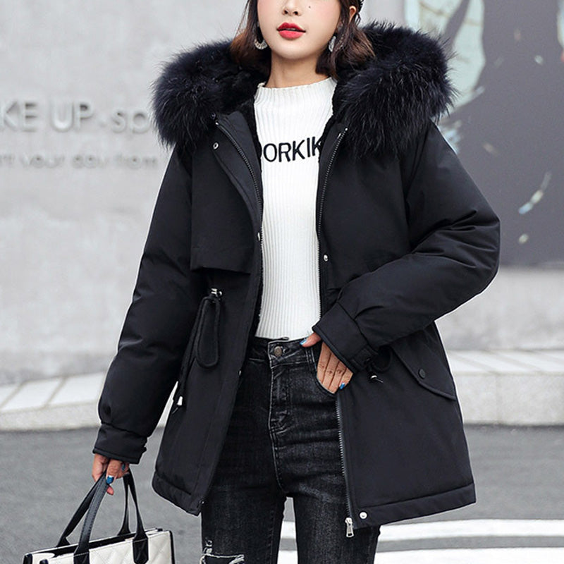 1 * Parka ample à capuche en polaire synthétique épaisse pour femme